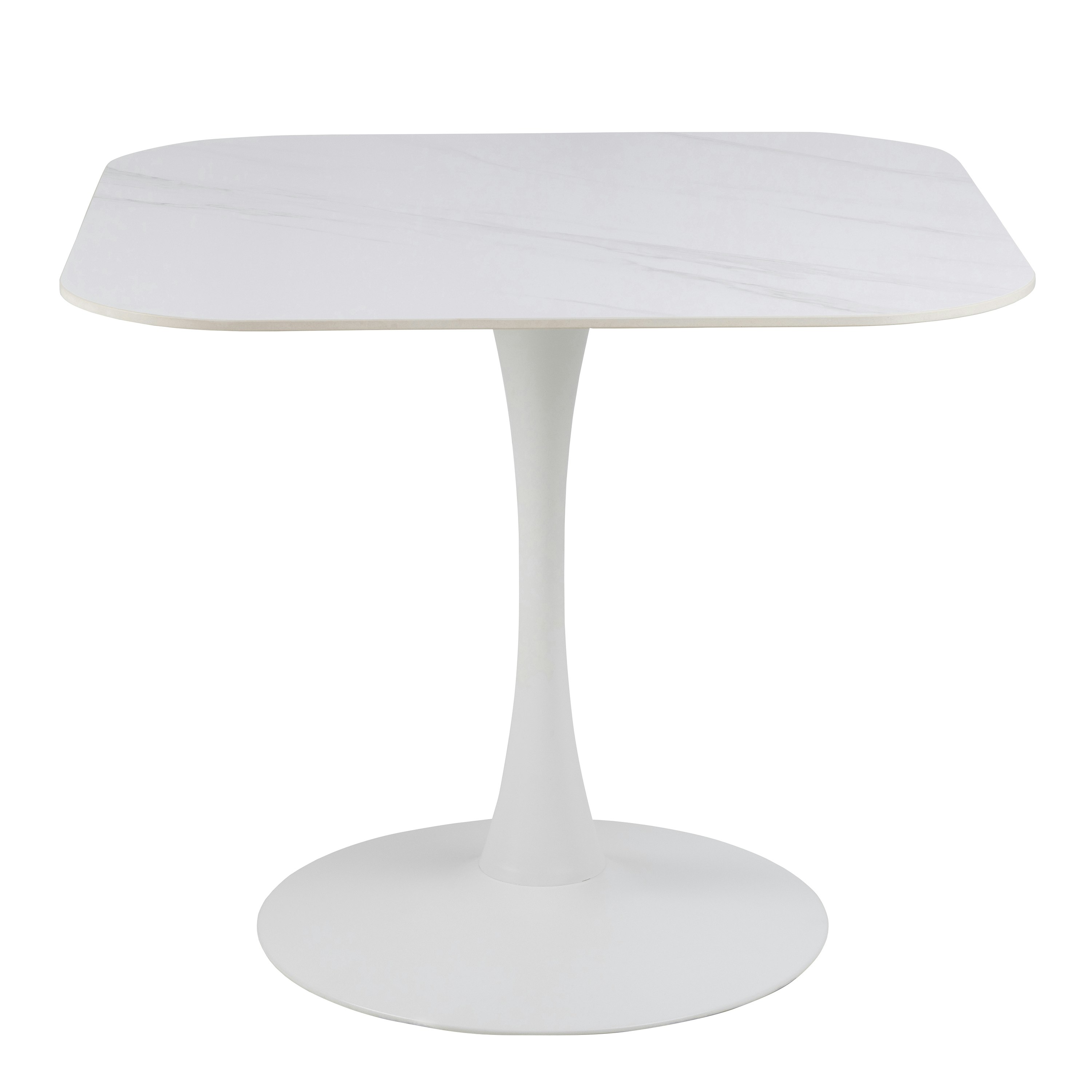 Actona Rackhams Malta Ceramic Square in White - 1from £265.00 up to £329.99 Compare prices4→Bring a crisp, contemporary look to your dining space with the Furniture To Go Malta Ceramic Square Dining Table in White. Designed to sit confidently at the centre of the room, it pairs a white ceram more→ic tabletop with a distinctive trumpet-shaped steel base for a clean, modern silhouette. The square top creates a balanced setting for everyday meals and more considered hosting, while the sculptural base adds visual interest without distracting from the table’s pared-back finish. With its refined contrast of ceramic and steel, this dining table suits modern interiors where simplicity and statement design are equally important. Key features Square dining table White ceramic tabletop Trumpet-shaped st…