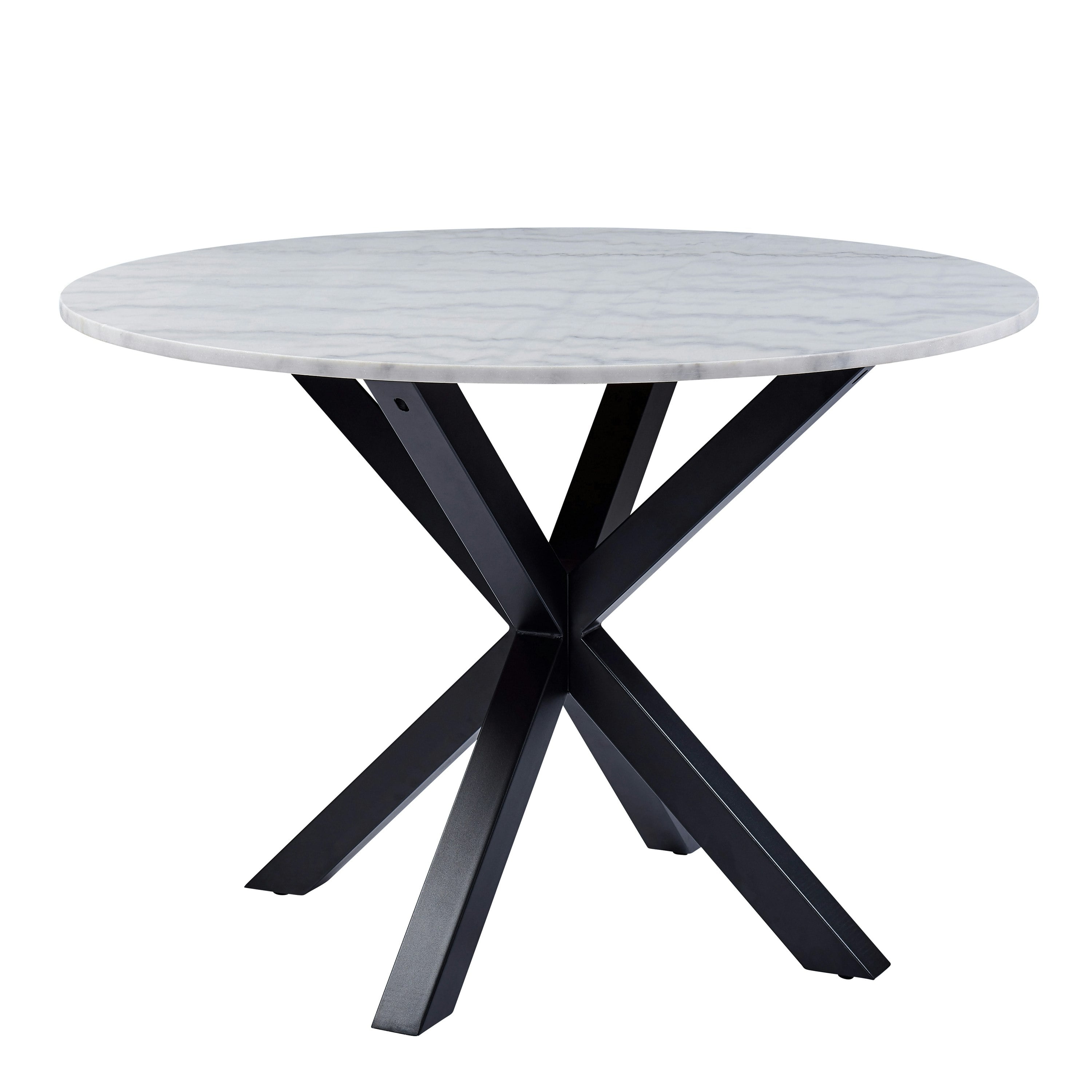 Actona Rackhams Heaven Round with White Polished Marble Top - Black - No - Whitefrom £429.00 up to £579.99 Compare prices5→Bringing a refined focal point to the dining space, the Furniture To Go Heaven round dining table pairs a white polished marble top with a matte black steel cross base. The contrast between the crisp more→marble surface and the graphic, modern base creates a look that feels both classic and contemporary, suited to interiors that favour clean lines and considered materials. With its round silhouette, Heaven encourages easy conversation and a more relaxed layout around the table, making it a natural choice for everyday dining as well as entertaining. The polished marble top lends a smooth, elegant finish, while the steel cross base introduces a confident architectural note that anchors the design. …