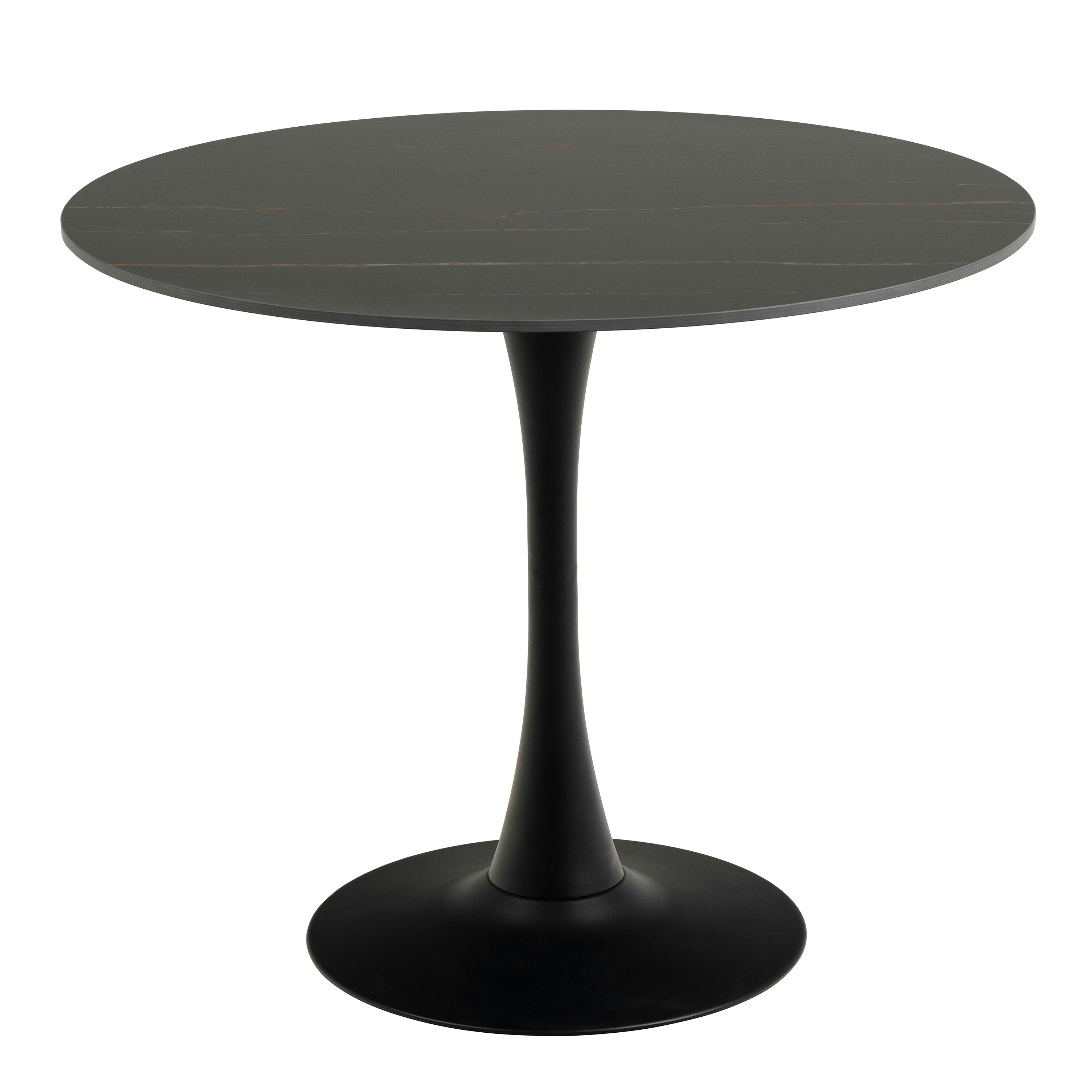 Actona Indoor Furniture Group Furniture To Go Ibiza Round In Black, Black 90AH000021438from £165.99 up to £199.99 Compare prices4→Make a bold statement in your dining area with our Ibiza round dining table, featuring a sophisticated matt black top and a matching trumpet base. The contemporary design is crafted from durable melam more→ine and powder-coated steel, offering a stylish and practical surface for any meal. Features: Modern design Marble print enhancing the modern look Great stability thanks to the wider leg Black metal base increasing durability Comfortably seats up to 4 people Specifications: Dimensions: H:74.0 x W:110.0 x D:110.0 cm Colour: Black Guarantee:1 year Material: Top Melamine Matt Black Izmir Rough / Base Steel Matt Black Rough Powder Coated Model Number: 90AH000021438