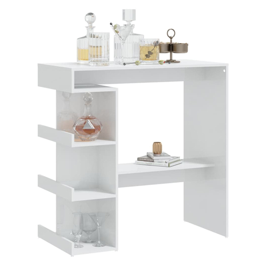 Aiza 100cm High Gloss Bar Table With Storage Rack In White 809455.VXL139.95Buy!£Furnitureinfashion.netDelivery: to United Kingdom ReportThis bar table is the perfect choice for small flats or where space is a little limited. Its modern design makes the table a chic addition to your kitchen or dining area. FEATURES : Material : Engine more→ered Wood Finish : High Gloss White Equipped with 3 storage racks, this bistro table provides ample space for you to put bottles of wine or other items on Thanks to the construction, it is durable, stable and easy to clean This pub table also features the footrest for excellent comfort In order to prevent overturning, this product must be used with the wall attachment device provided Assembly required : yes Available at an affordable price Images shown are for illustration purpose only