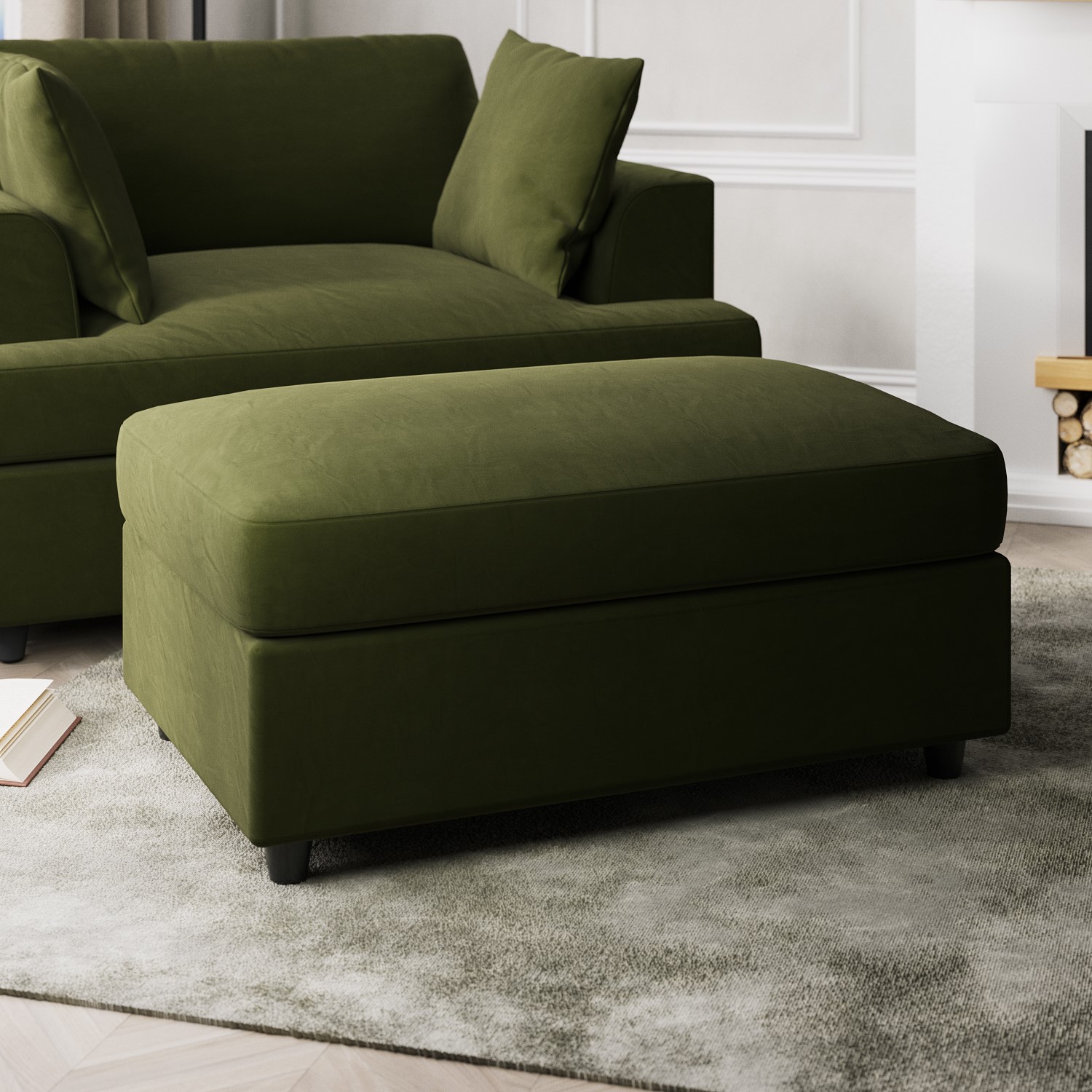August Large Olive Green Velvet Footstool - August AUG002199.97Buy!£Furniture123.co.ukDelivery: in United Kingdom ReportFeatures we love Footstool upholstered in soft olive green matt velvetPerfect for matching the August sofa and loveseatModern simplistic design with clean linesFilled with comfortable spongey foamUse more→as a footrest or as additional seating All about meThe August velvet footstool is the ideal place to put your feet up after a long day and is the perfect match for our August loveseat and sofa. Upholstered in luxuriously soft olive green matt velvet it’s a great addition to any living roomNeed to know . Dimensions . W96 x D62 x H42 cm Packed dimensions . W98 x D64 x H44 cm Weight . 14 kg Max supported weight . 100 kg Colour . Olive green Finish . Velvet upholstery and dark plastic legs …
