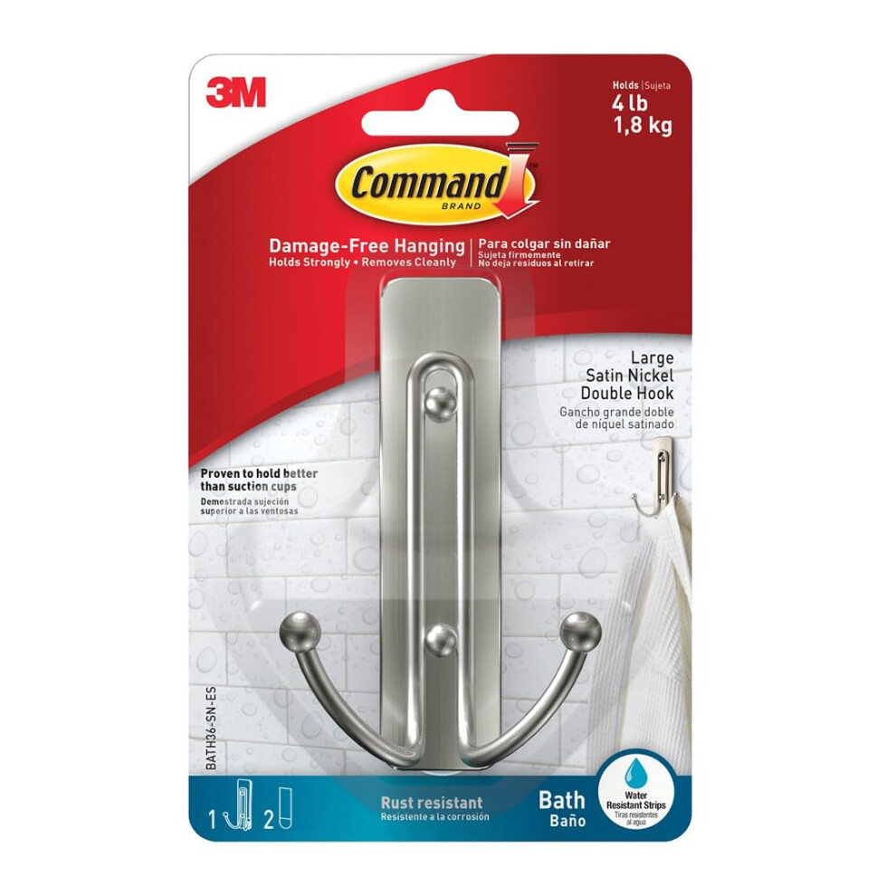 3M Command Bathroom Large Double Hook, Pack of 1 Hook and 2 Adhesive Strips, Metal - Damage Free Hanging - Holds up to 1.8 kg,Features STRONG AND VERSATILE: Tested and proven to hold better than suction cups in wet and humid conditions; Great for hanging towels, robes, £13.35Onbuy.comDelivery: in United Kingdom ReportBuy!