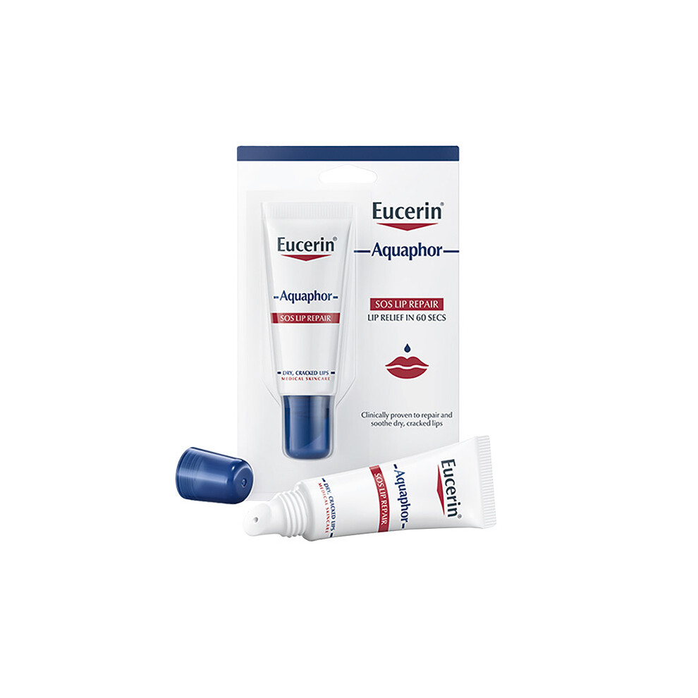 Eucerin Aquaphor Lip Repair SOS 10mlfrom £9.00 up to £15.00 Compare prices2→The lip balm Eucerin Aquaphor Resterning SOS quickly soothes lips in 60 seconds. It has been clinically proven to repair and soothe dry, chapped lips while creating una Ideal protective barrier. Promo more→ting rapid regeneration of lip skin, this balm ensures soft and supple lips. Fragrance-free and preservative-free, this lip balm is suitable for the whole family, including children as young as three. It can essere used on a daily basis or whenever lips need an extra boost.