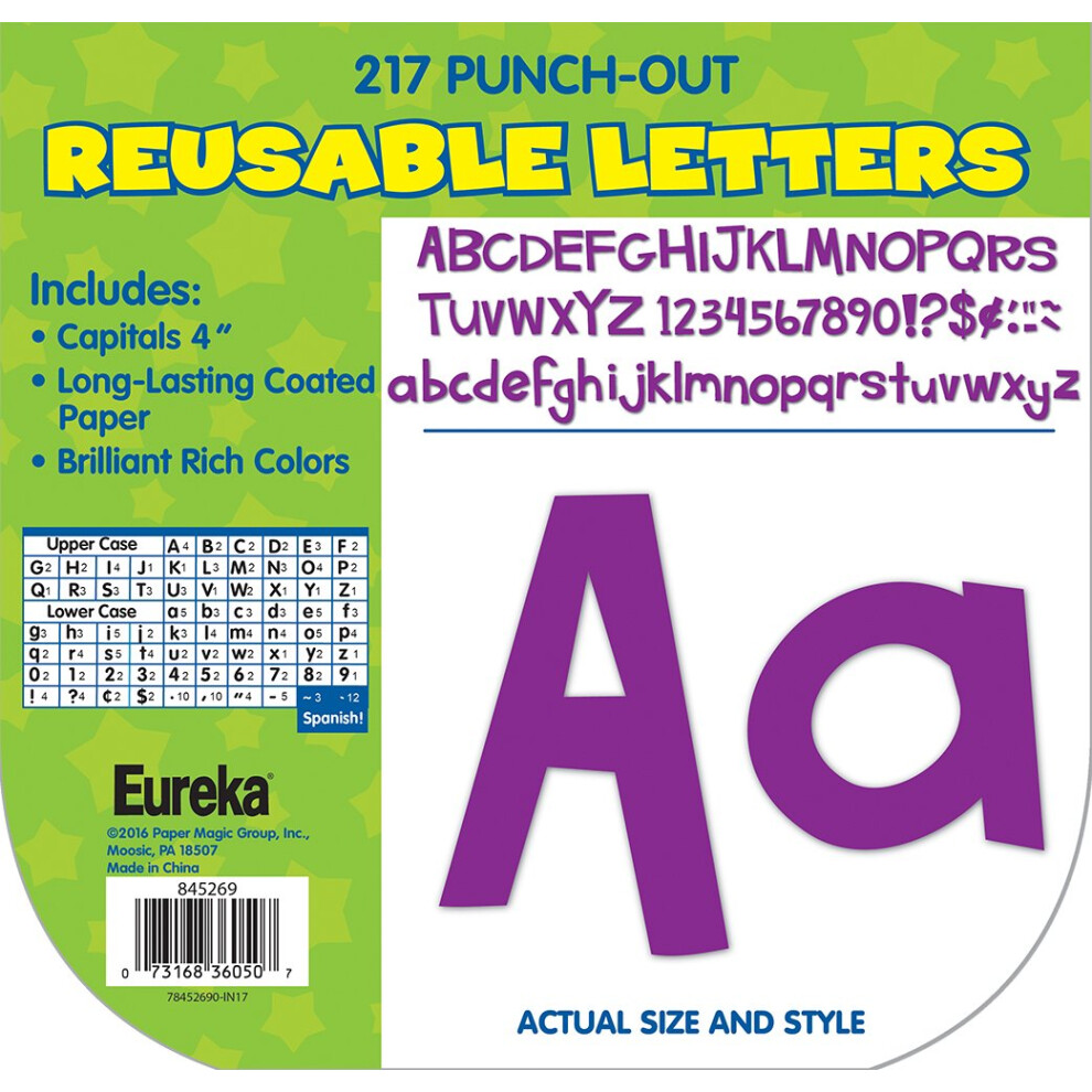 Eureka Back to School Purple Punch Out Letters for Classroom Decoration 217pc 4'' H 84526921.63Buy!£OnBuy.comDelivery: in United Kingdom ReportOur Eureka Back to School Purple Punch Out Paper Letters for Classrooms help teachers spell out words or assignments in a fun and educational way.