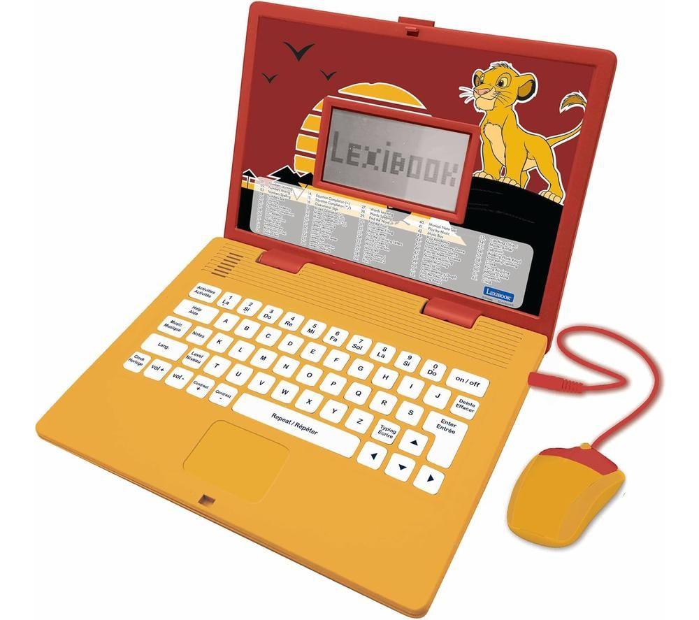 Lexibook Bilingual French & English Educational Laptop - The Lion Kingfrom £31.98 up to £36.49 Compare prices2→Learning's fun with this Lexibook Laptop's 124 educational activities. They cover English, French, Math and more! And when your kids are done learning, they can test their skills with fun games that w more→ill help sharpen logic, memory and even speed. This Lexibook's got a mouse and keyboard so your little ones will feel like proper grown-ups. Plus, it's never too early to pick up some handy typing skills.Good to know- Tick off the clock reading activities and make sure you're on time for school!- Music activities help teach notes and melodies so kiddos can become budding Beethovens- The Lion King design helps make learning more appealing, and kids may want to bring it everywhere- Bilingual models work whether y…