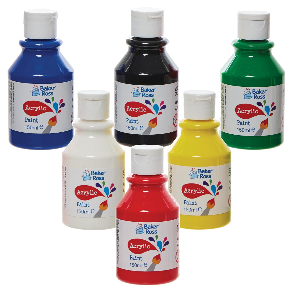 ROSS Baker FN505 Primary Colours Acrylic Paints Pack 150ml - Pack of 6, Paint Value Pack of Bottles, Paint for Kids13.52Buy!£OnBuy.comDelivery: in United Kingdom ReportIncluded in the Pack: This pack contains 6 paints, in 6 colours - Red, Green, Yellow, Blue, Black & White. Comes in handy 150ml bottles