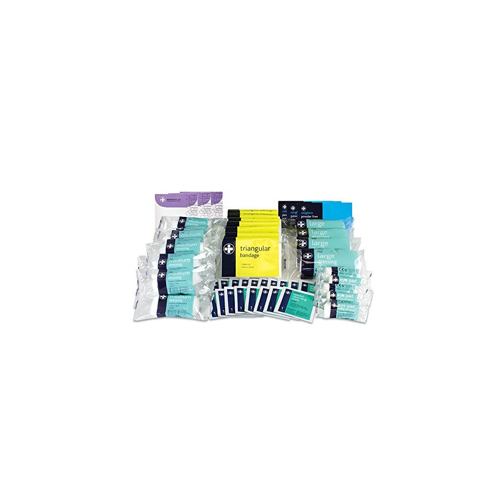 Refill 20 Person CM0027 (44003m)from £9.95 up to £21.92 Compare prices4→Refill for CM0020Contents: 1 x Guidance note 6 x Non woven triangular bandages 3 x Large sterile dressing (180 x 180mm) 9 x Medium sterile dressing (120 x 120mm) 4 x Sterile e more→ye pad dressing 40 x Assorted sterile waterproof plasters 10 x Alcohol free cleansing wipes 2 x Pair of disposable vinyl gloves 12 x Safety pins