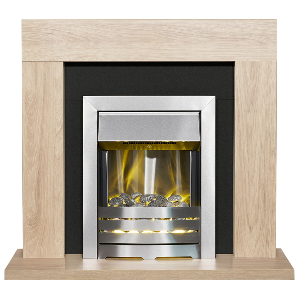 Adam Malmo in Oak & Black with Helios Fire in Brushed, 39 Inch Black,Silver 23752275.00Buy!£Onbuy.comDelivery: in United Kingdom Report- Oak surround. - Reversible back panel with cream or black option. - Brushed steel electric inset fire. - Up to 2kW heat output with LED...
