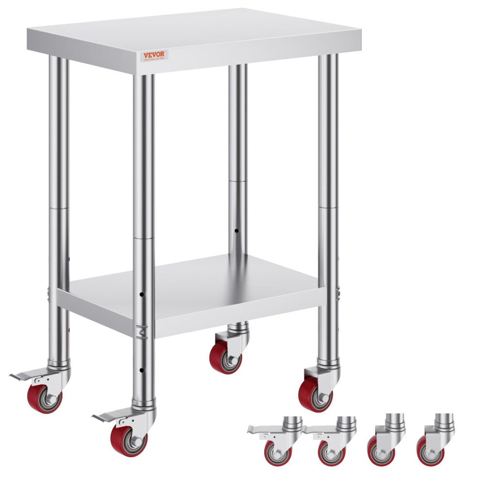 Vevor Mophorn Stainless Steel Catering Work Table 24x18 Inch Commercial Kitchen Table with 4 Wheels Commercial Food Prep WorkbenchFeatures ATTENTION: For your security, gloves are required during assembly! High-Quality Stainless Steel: This work table, measuring 24 x 18 x 34... £102.55OnBuy.comDelivery: in United Kingdom ReportBuy!