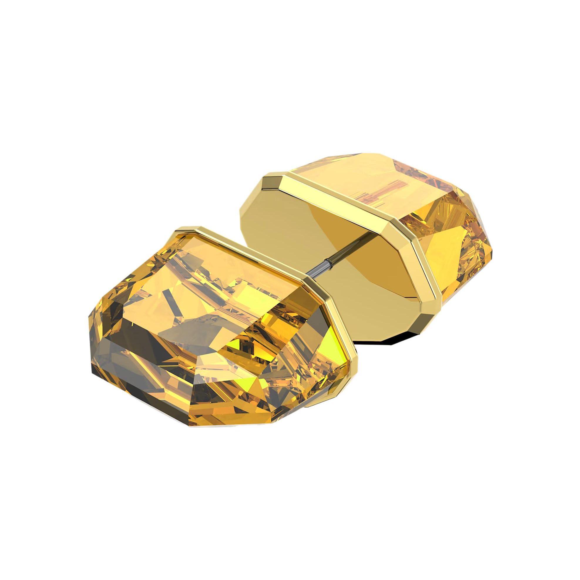 Swarovski Chroma Gold Tone Plated Yellow Crystal Stud 5613680from £53.00 up to £54.95 Compare prices2→These unisex stud earrings feature three-dimensional, pyramid-cut crystals in a sophisticated deep yellow hue, drawing inspiration from the artistic work of Emma Kunz. Set in gold-tone plated settings more→with secure post back fastenings, these earrings offer versatility. They can be worn in multiples to create a rhythmic and geometric ear look, or individually for a minimalist statement. Length: 1.4cm Width: 1cm Weight (Individual Piece): 1.3g Item Code: 5613680