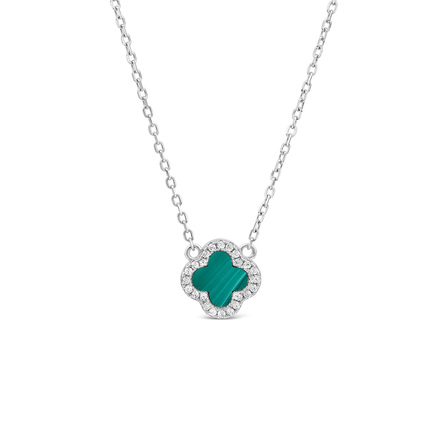 Silver Malachite & Cubic Zirconia Clover Petal Necklet Ladies70.00Buy!£Fraserhart.co.ukDelivery: in United Kingdom ReportCrafted in sterling silver, this necklet features vibrant malachite centre clover petal accented with shimmering cubic zirconia. A striking piece that adds a pop of color and elegance to any outfit.