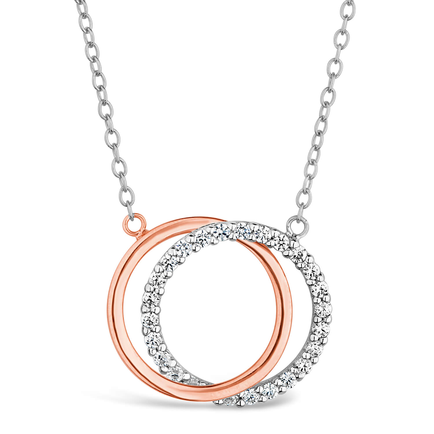 9ct & Rose Gold Cubic Zirconia Circle Necklet Ladies275.00Buy!£Fraserhart.co.ukDelivery: in United Kingdom ReportThis 9ct rose gold and white gold necklet features two interlocking circle charms. The white gold circle is beautifully decorated with cubic zirconia gemstones, while the rose gold circle is polished. more→Suspended from a 9ct rose gold dainty link chain, this is an effortlessly stylish piece.