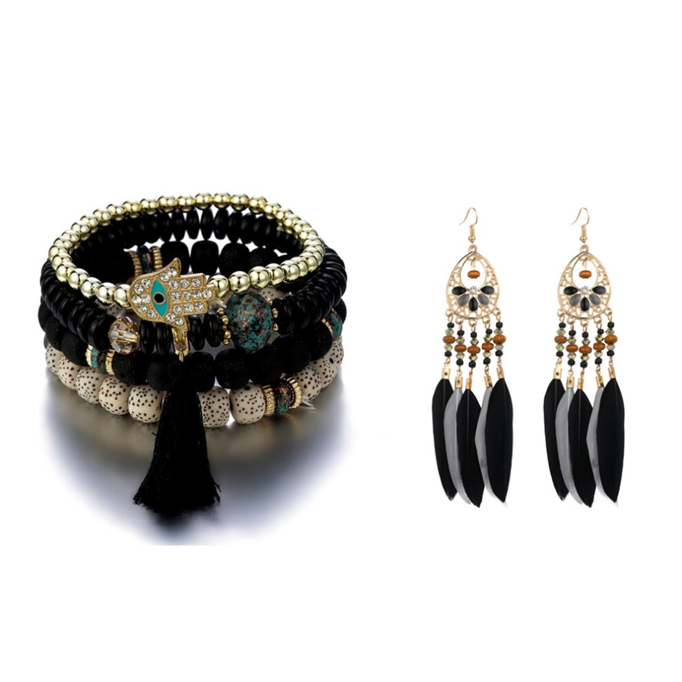 Bohemian-Style Bracelet with Feather Earring Set (Black)7.46Buy!£Onbuy.comDelivery: in United Kingdom ReportThese bracelet and earring sets are perfect for giving a bohemian twist to any outfit. Suitable for special occasions or everyday wear. Comfortable...
